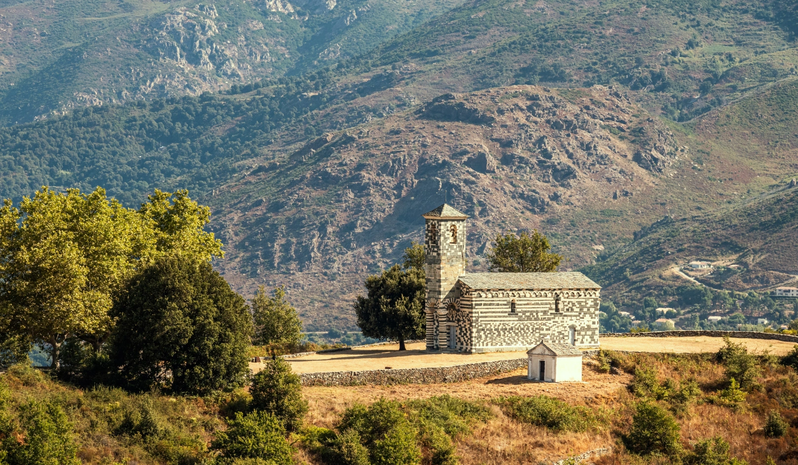 Le Nebbiu rassemble plusieurs villages perchés à découvrir depuis Saint-Florent. Murato abrite l'église San Michele, remarquable édifice roman polychrome du XIIe siècle classé monument historique. Santo-Pietro-di-Tenda domine la plaine avec ses maisons de pierres traditionnelles.